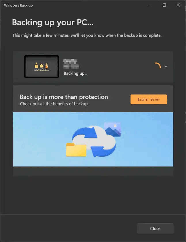 Users can also initiate a manual backup by opening the Windows Backup app and following the prompts.